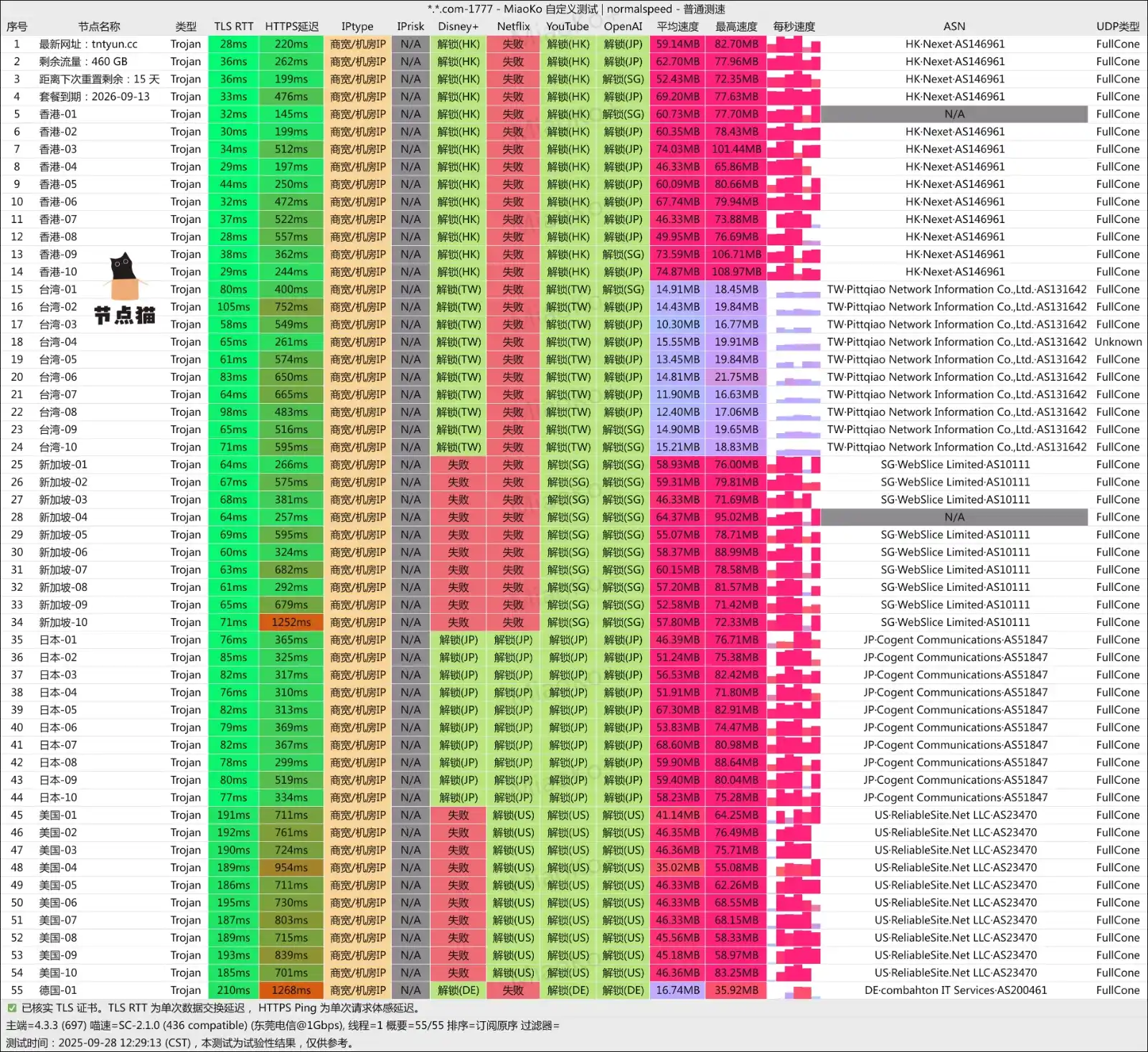 注:不同地区的连接到同一节点,Ping 值也会不同,节点猫此处会选择广东、上海等地的测速节点进行 Ping 值参考。目前大家手里用的 Clash 或 Shadowrocket 测出来的 Ping 值都不具备参考意义,只适合当作一个连通性参考。自己测 Ping 值建议通过专门的 speedtest 网站进行,不同地区的 Ping 值差别很大,请参考同一地区节点的不同服务商节点的 Ping 值进行比较。